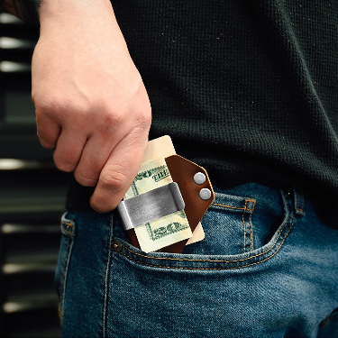 The Caliber Clip is our smallest and most compact wallet. It can be used everyday by the ultra minimalist or reserved for special occasions like a wedding where just a credit card, ID, and a few bills are needed. The sleek design allows it to fit in any pant, coat, or shirt pocket without any added bulk. Customize your wallet by selecting the leather color of your choice.