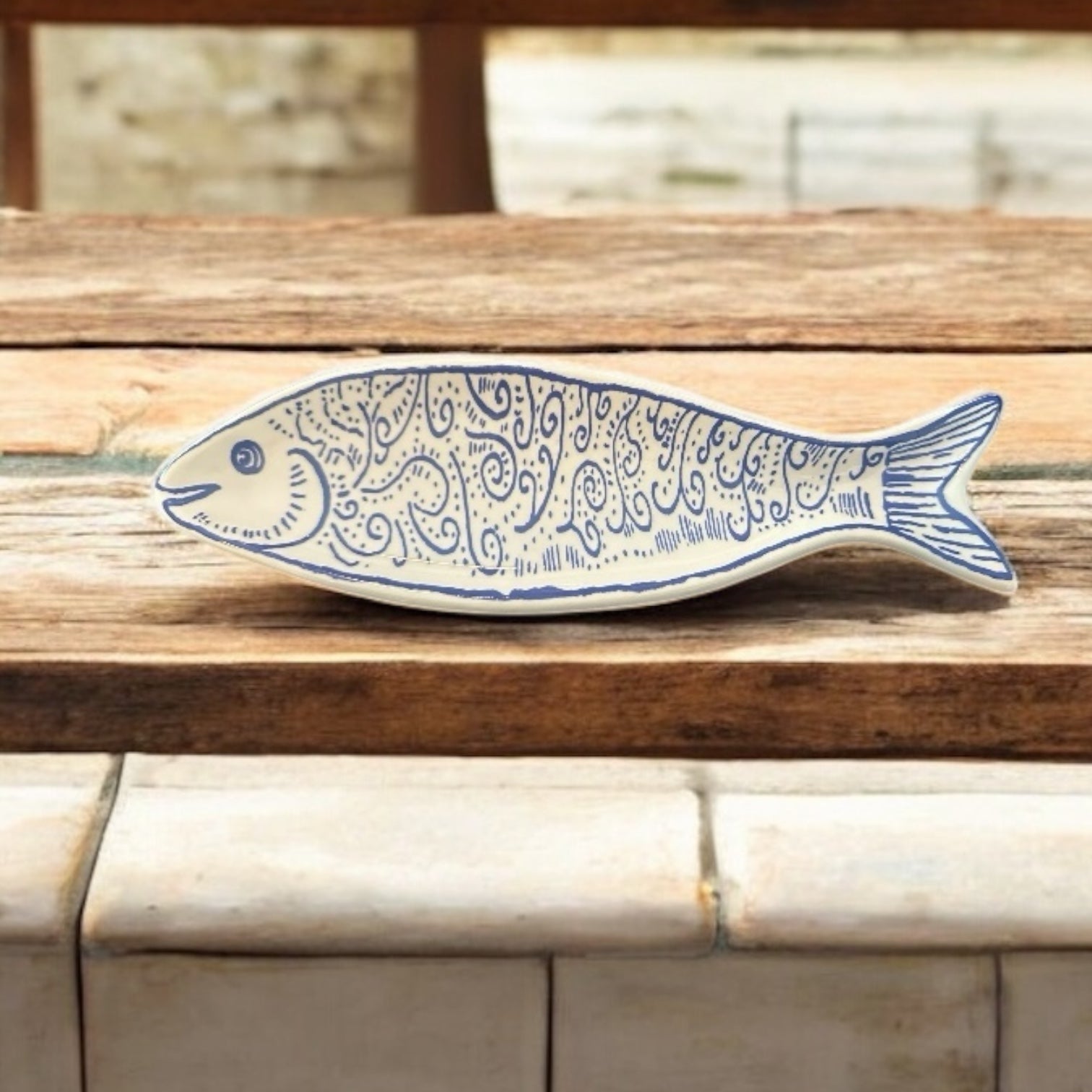 Bring a splash of seaside style to your table with this uniquely shaped Fish Spiral Dish. Measuring 10 inches long, 3 inches wide, and 0.75 inches deep, this beautifully crafted dish is perfect for serving small bites with big personality.