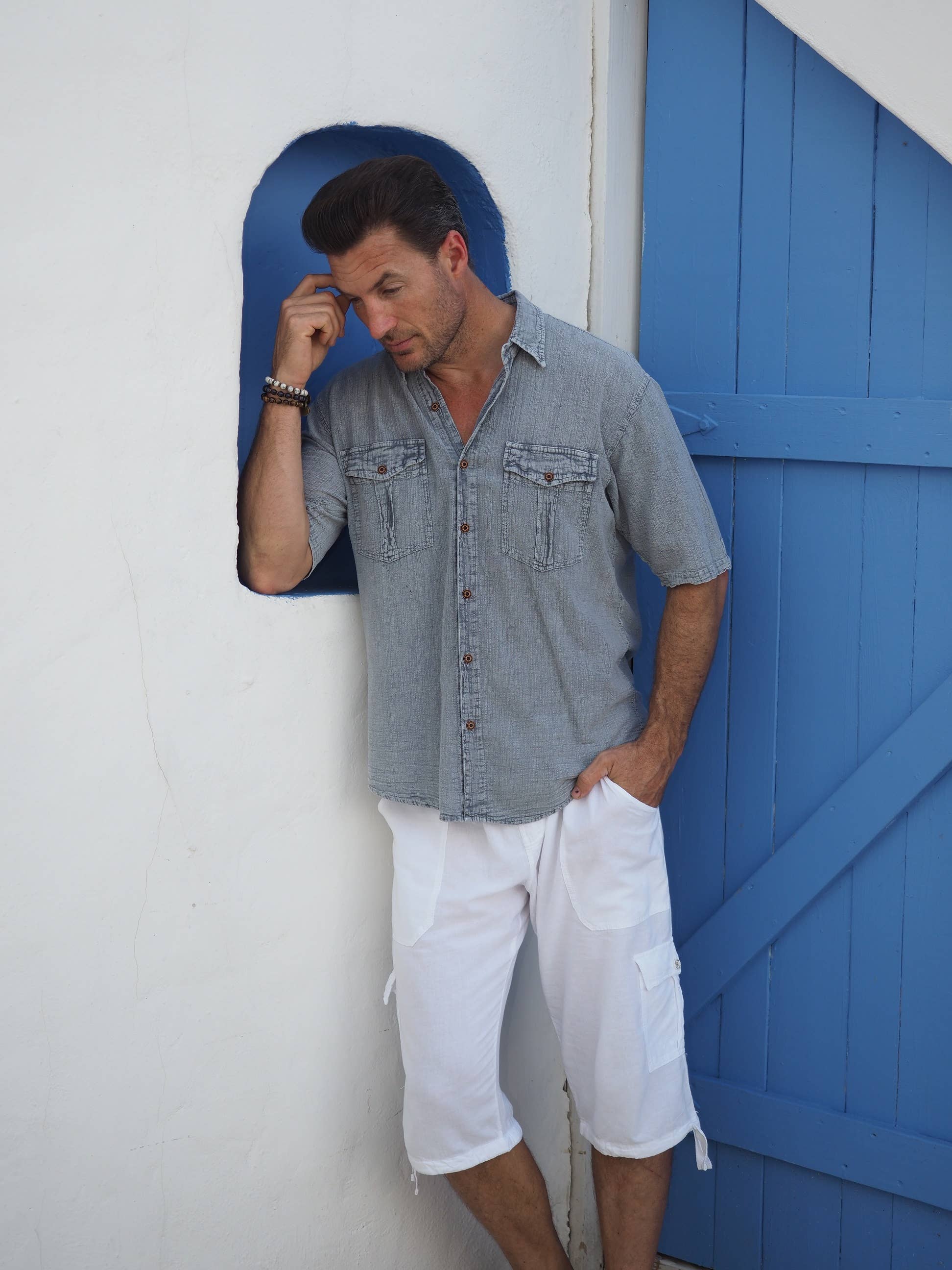 Cotton Natural short sleeve, double pocket button up. Made from the finest Peruvian Pima Cotton. Soft and comfortable, breathable relaxed fit.