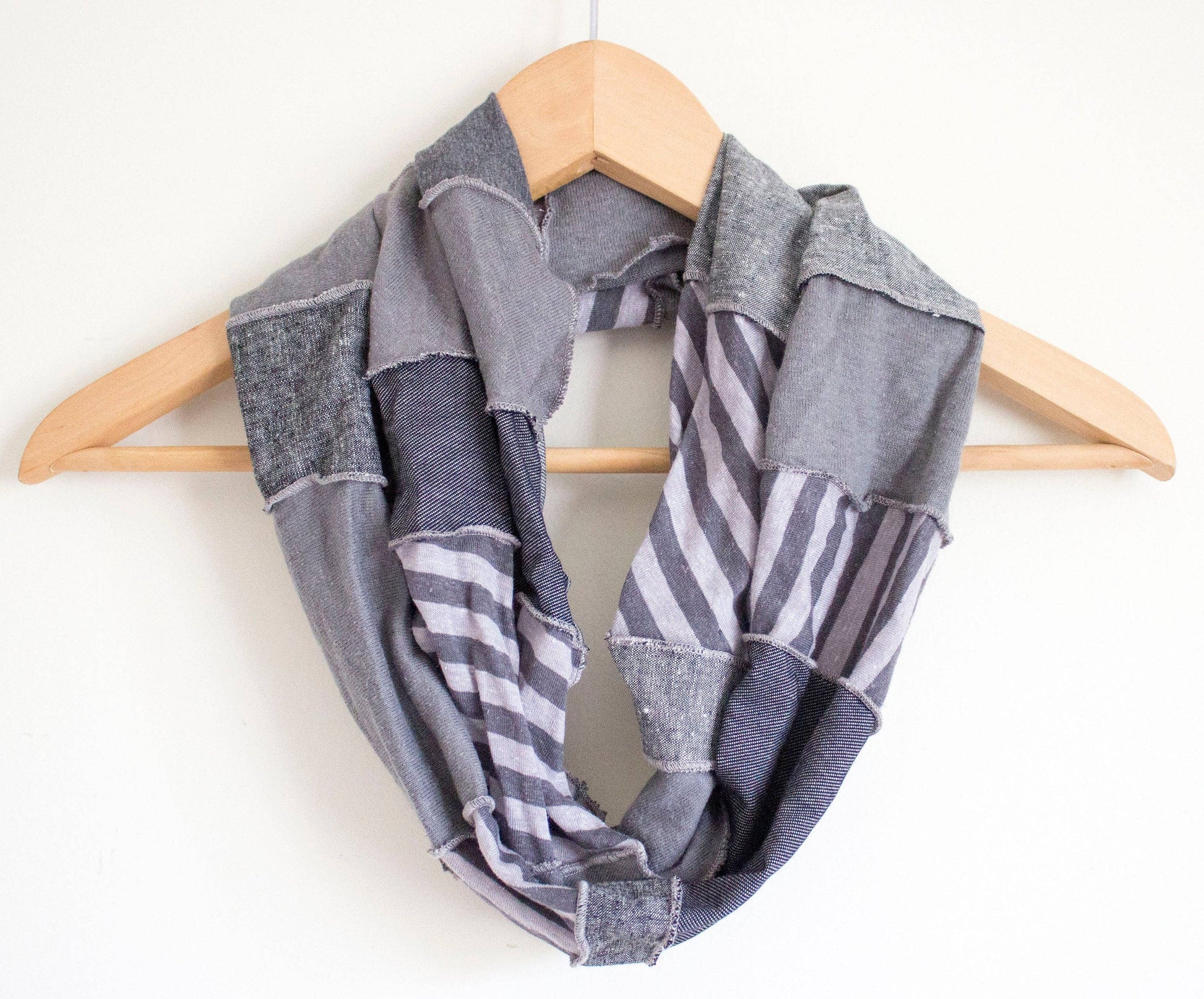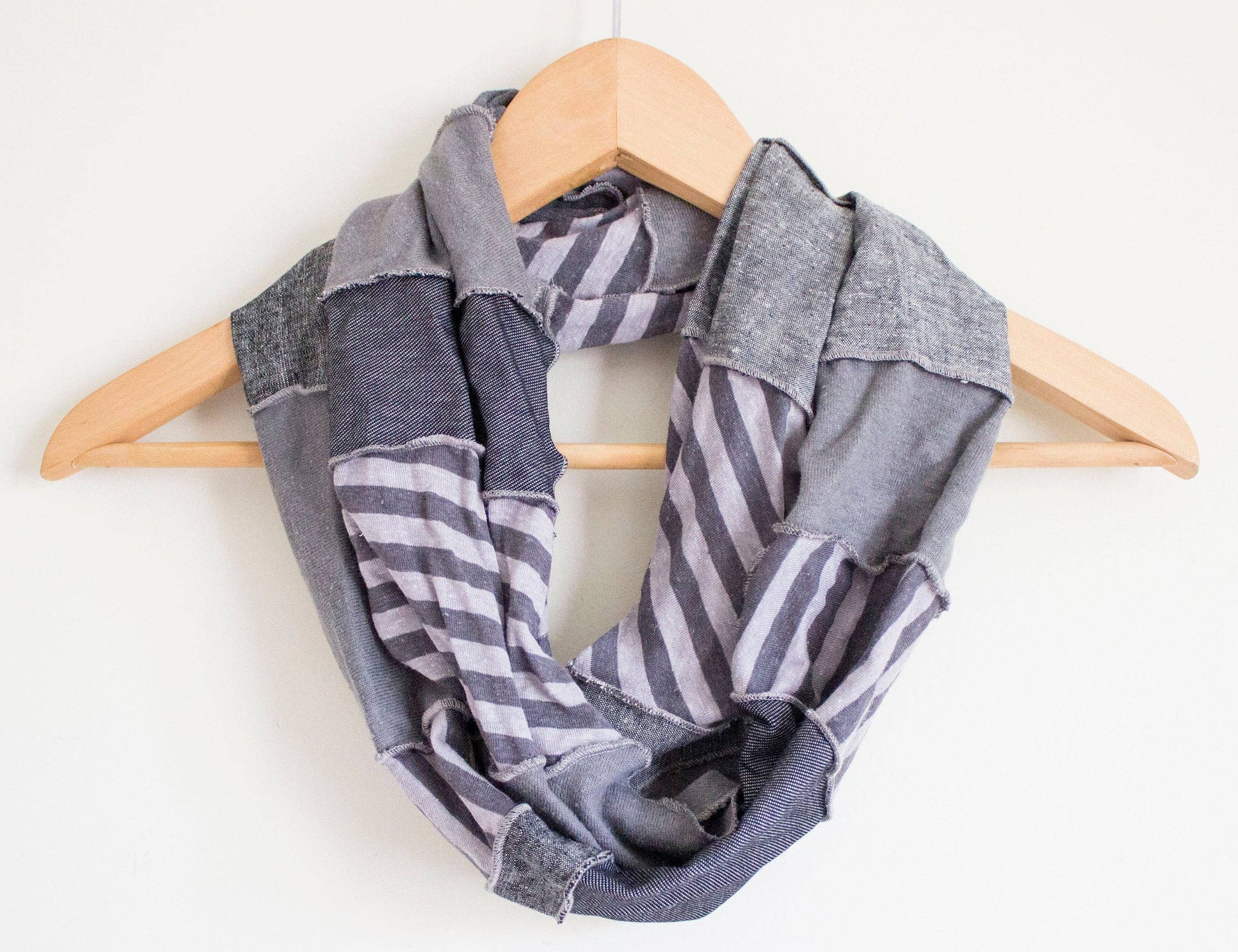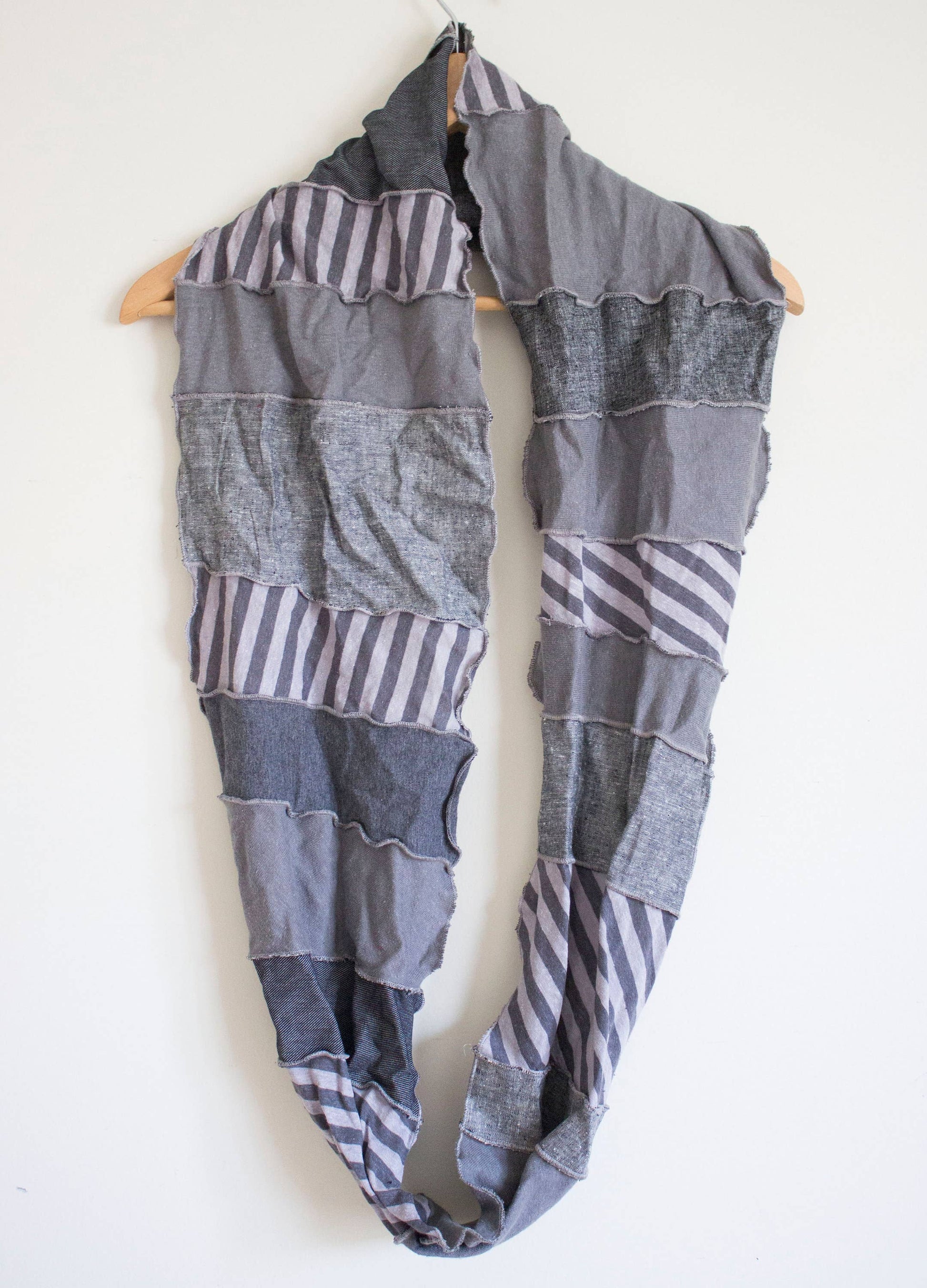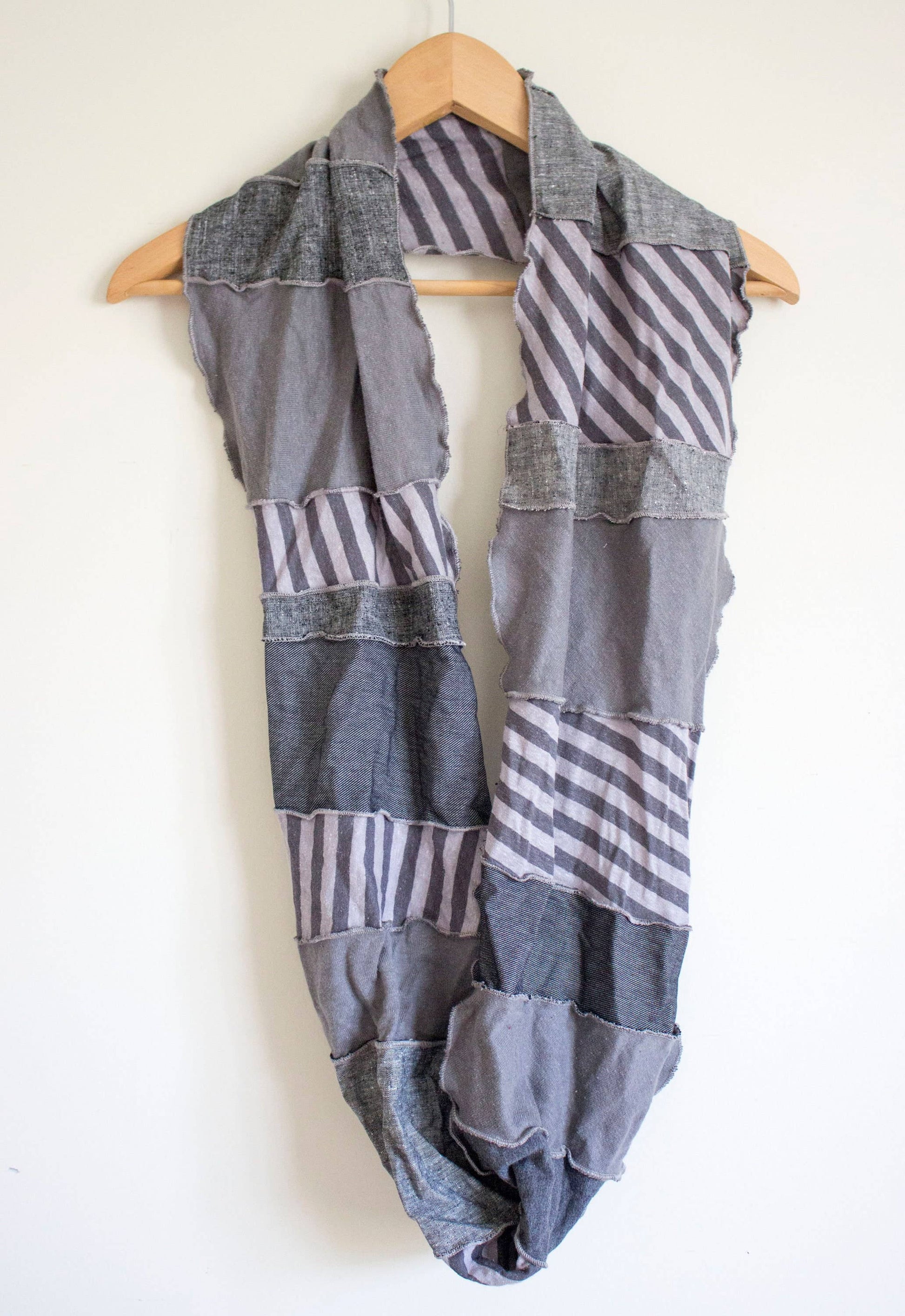 This one of a kind scarf is an easy way to dress up any outfit and add a perfect tough of warmth without being too bulky. A great gift for a special someone in your life, these are are made from organic fabrics which are soft and breathable and feel great against your skin. This one is made from hemp, bamboo and organic cotton easy to wear neutrals; heathered grays, charcoal and two tone gray stripes contrast stripes. The perfect accent piece that will go with almost anything. These are part of our efforts to go zero waste and are made from remnants left over after making our signature line of organic clothing. All fabrics are hypoallergenic, vegan and cruelty free.