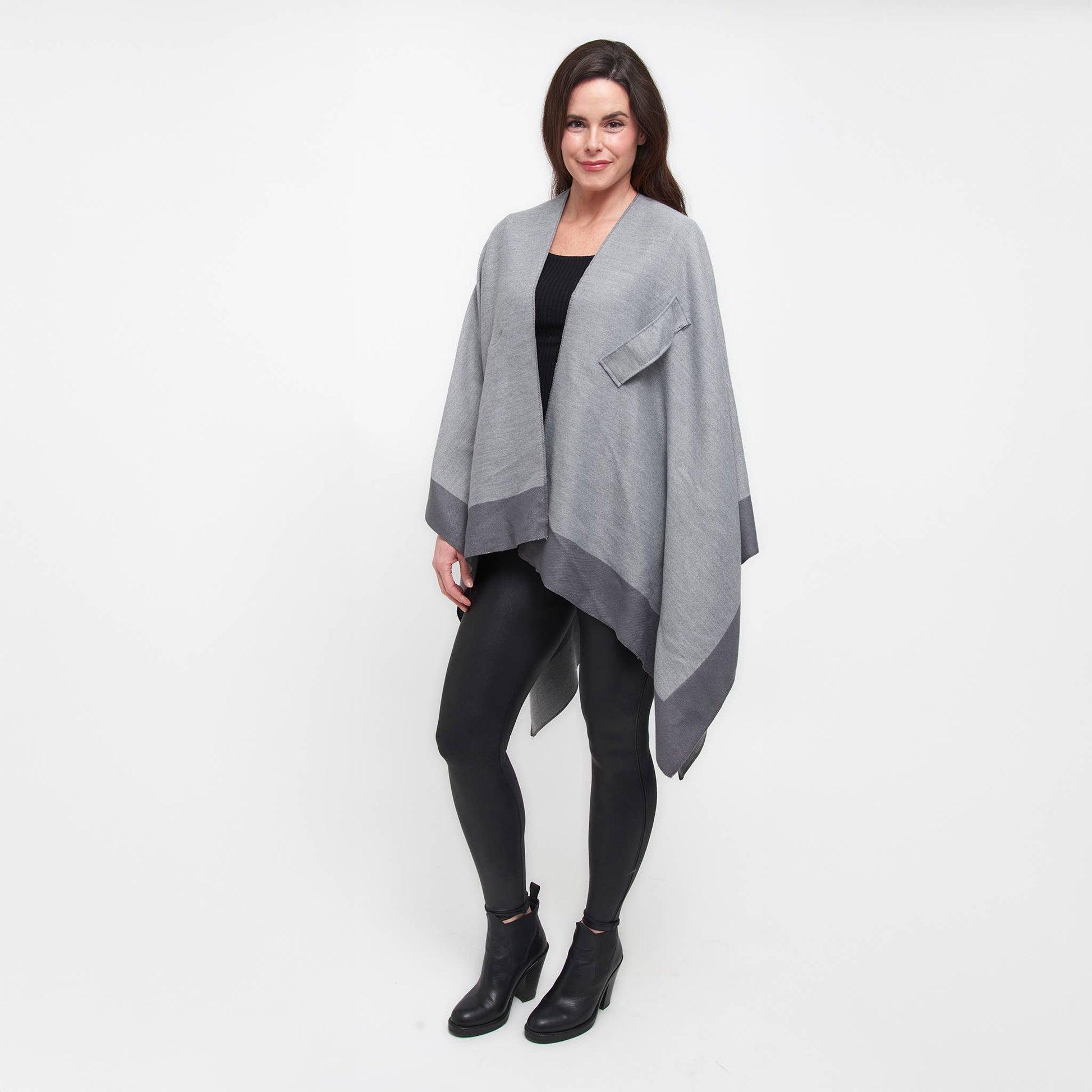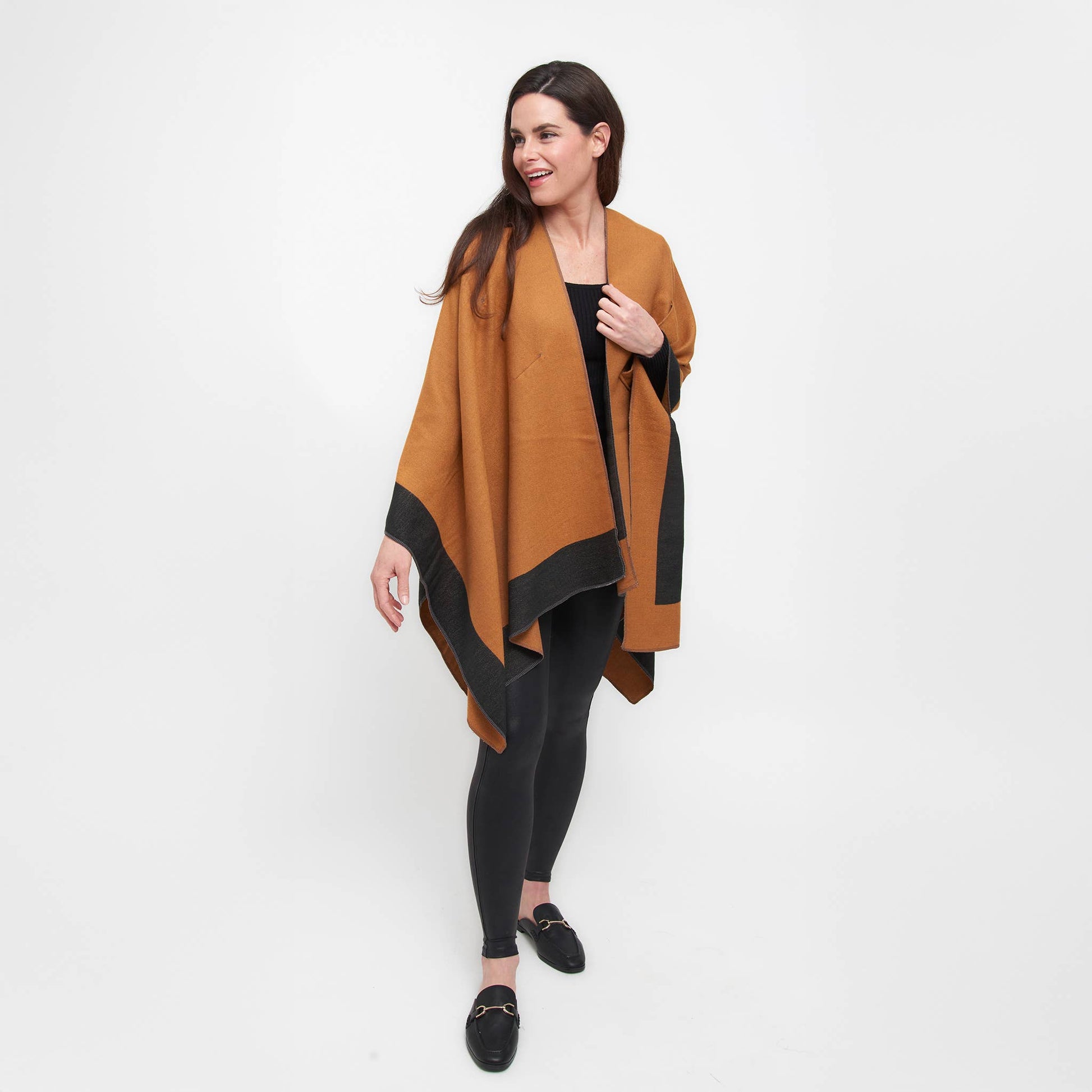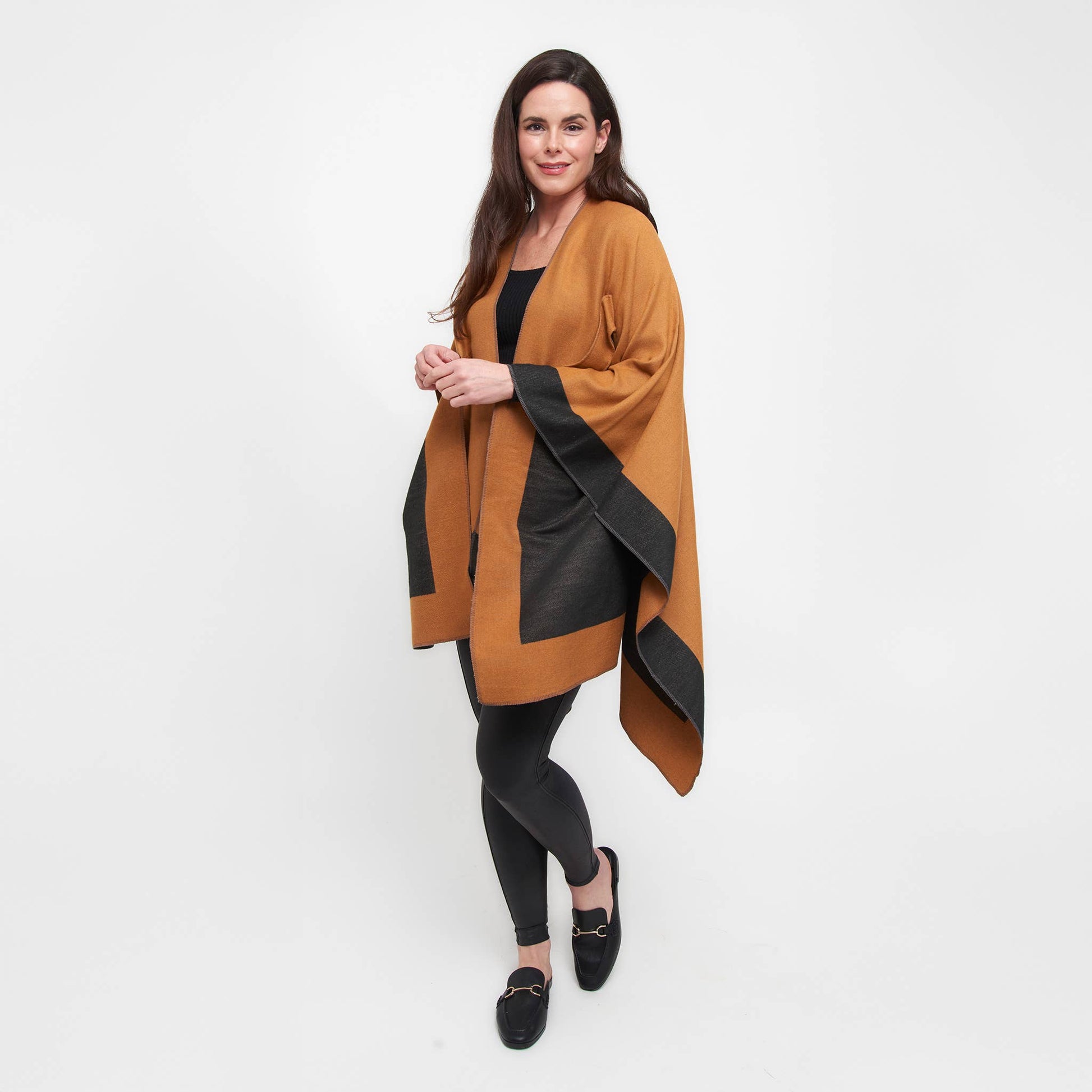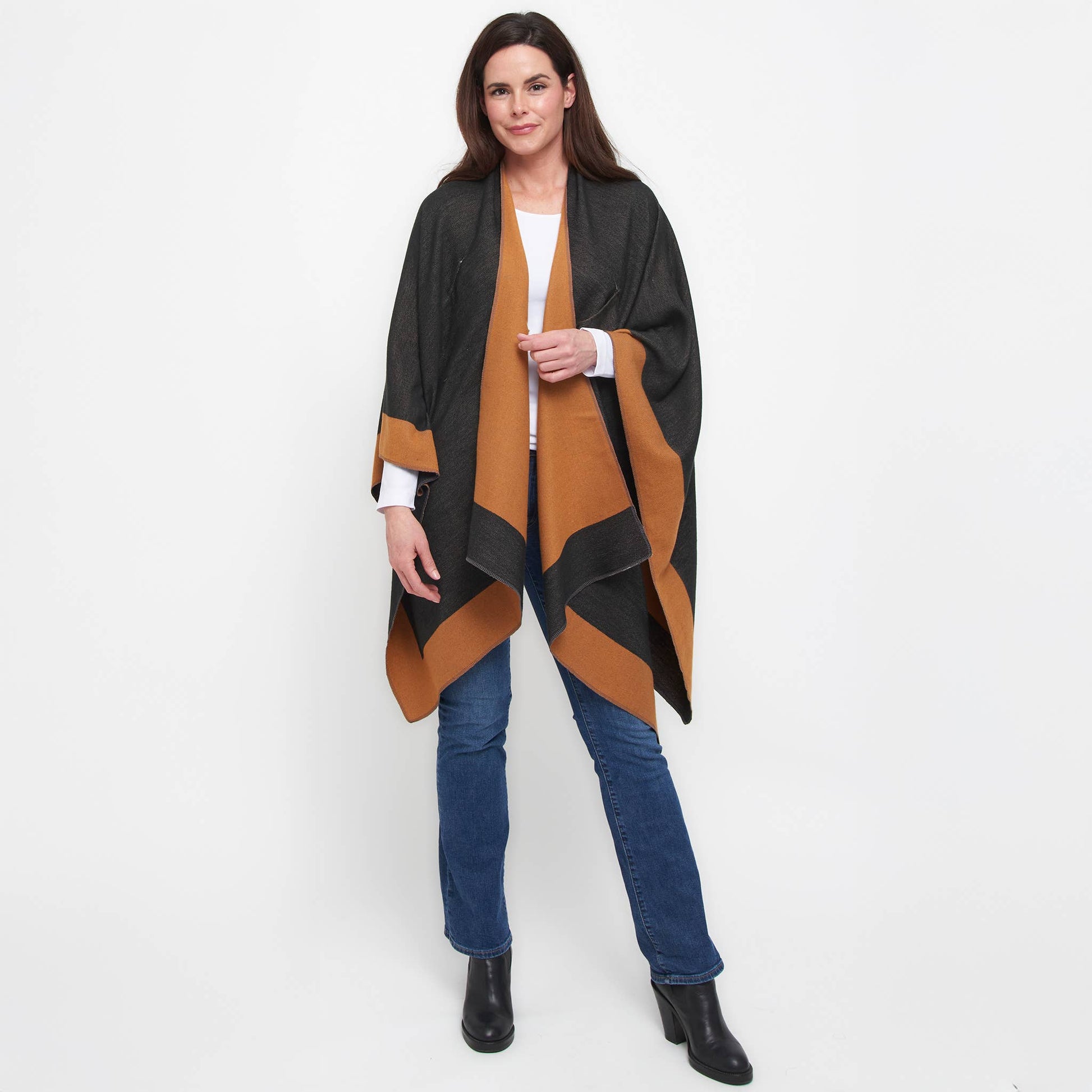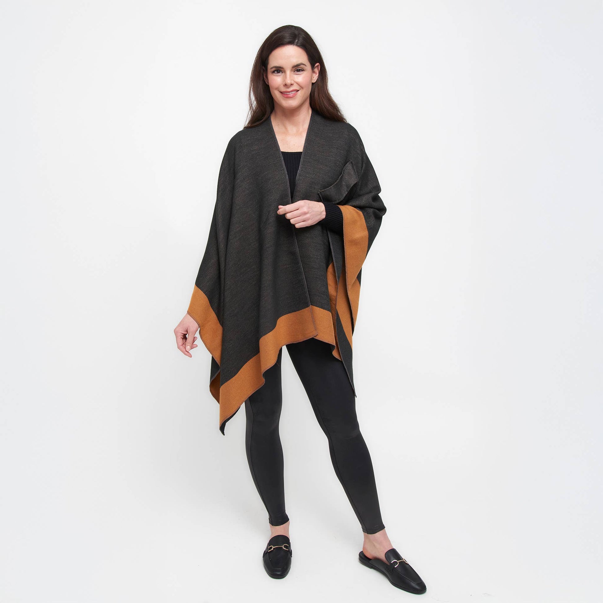 Double your style with the Mackenzie Wrap — a reversible, open-front layer that offers two chic looks in one. Designed for everyday ease, this one-size wrap features dual loop closures on both sides, allowing for a secure, hands-free fit. Bold color blocking and soft, structured fabric bring warmth and polish to any outfit. Whether you're dressing up or down, Mackenzie is the effortless layer that works double-time for your wardrobe.