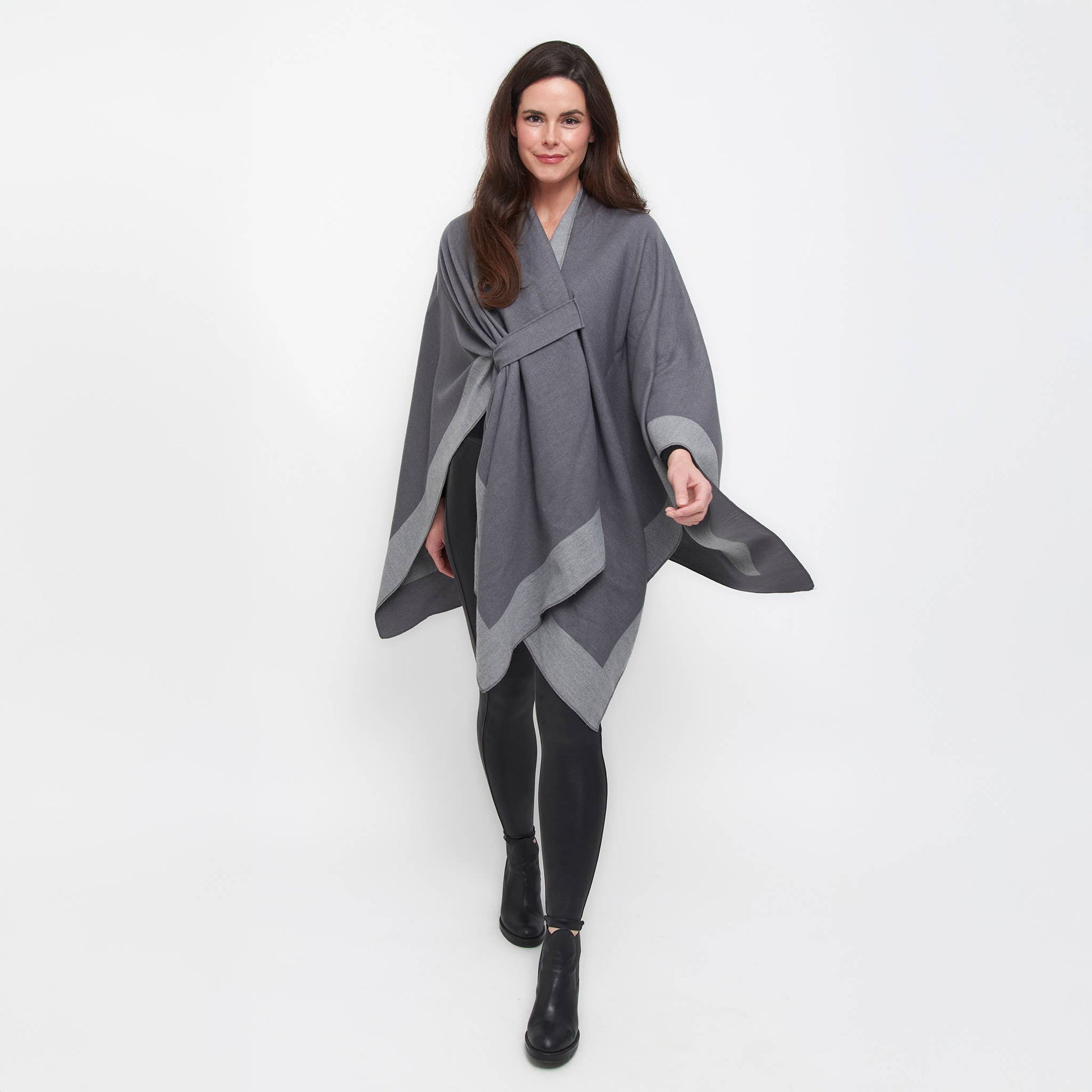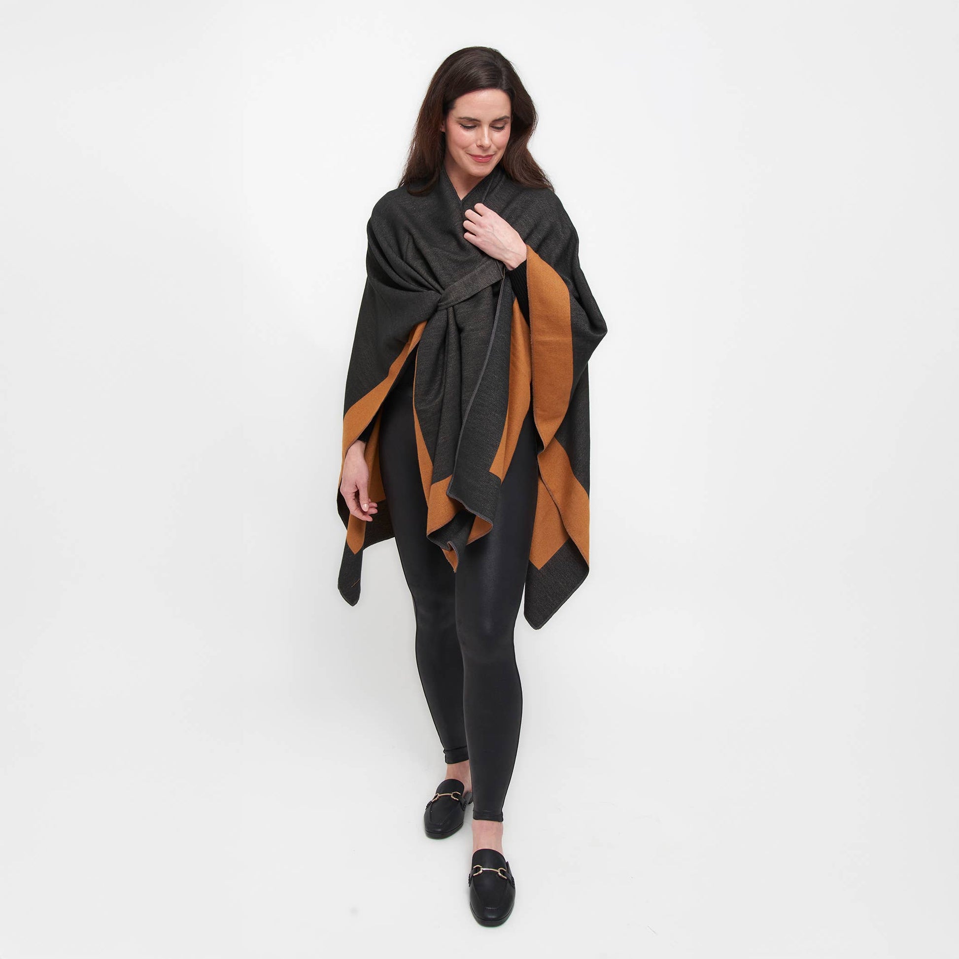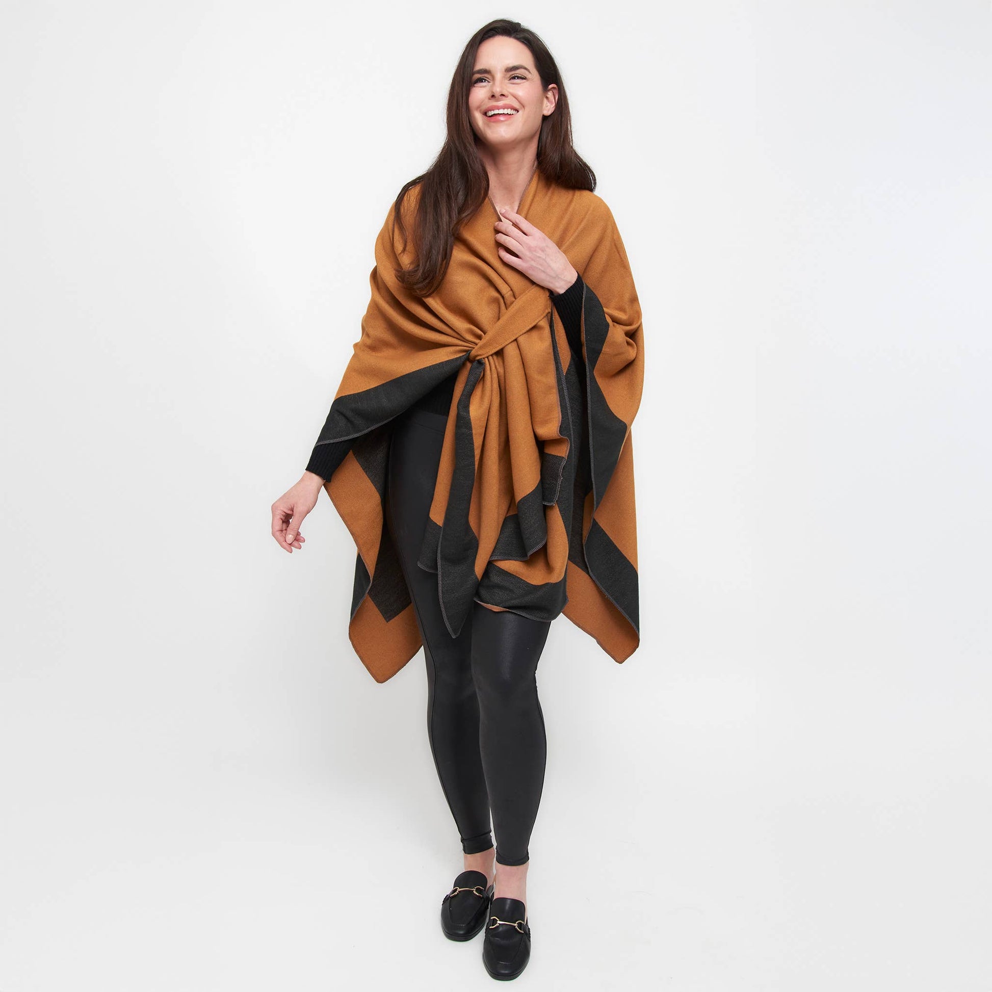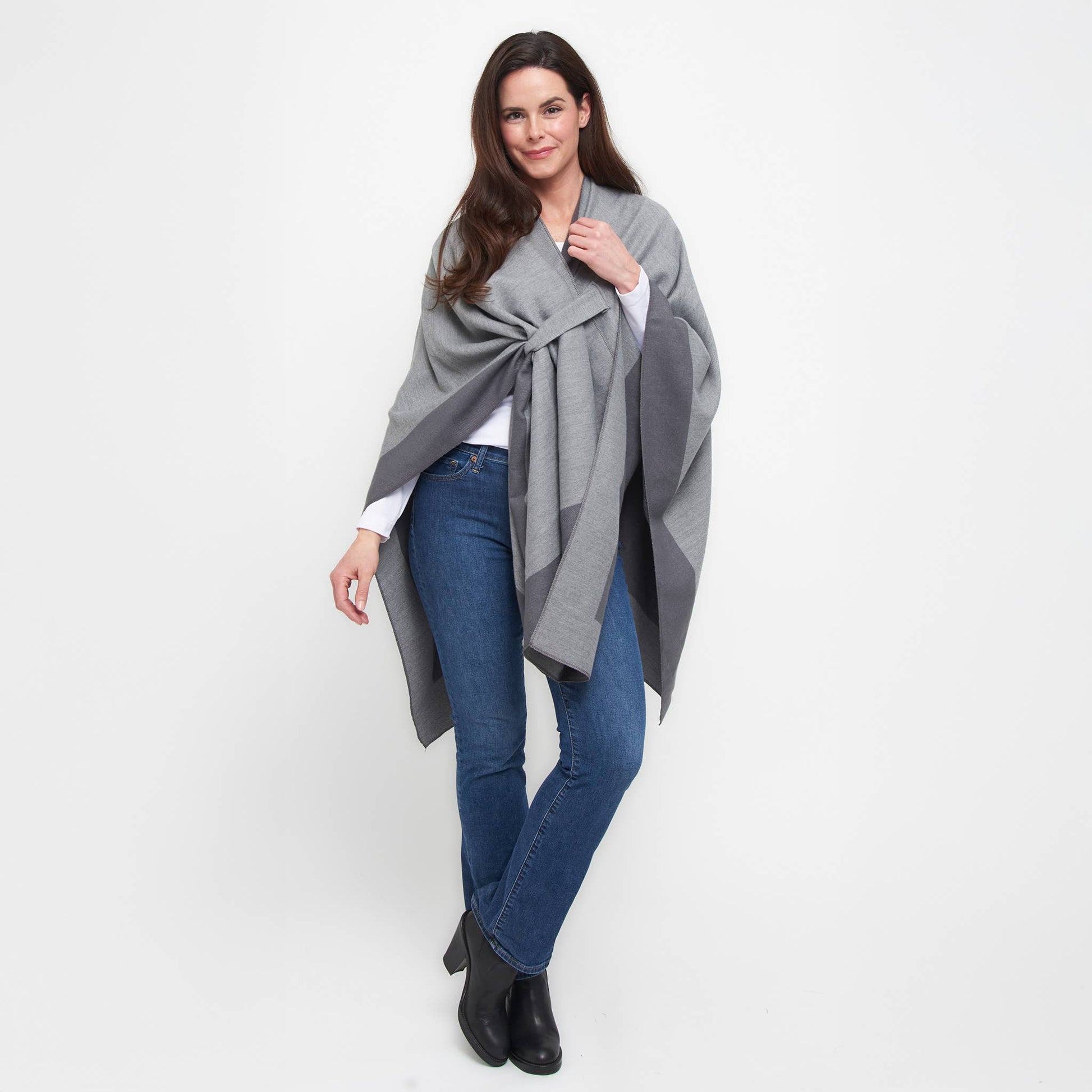 Double your style with the Mackenzie Wrap — a reversible, open-front layer that offers two chic looks in one. Designed for everyday ease, this one-size wrap features dual loop closures on both sides, allowing for a secure, hands-free fit. Bold color blocking and soft, structured fabric bring warmth and polish to any outfit. Whether you're dressing up or down, Mackenzie is the effortless layer that works double-time for your wardrobe.
