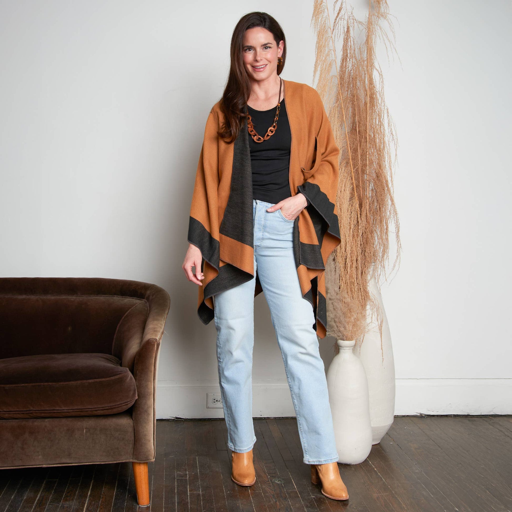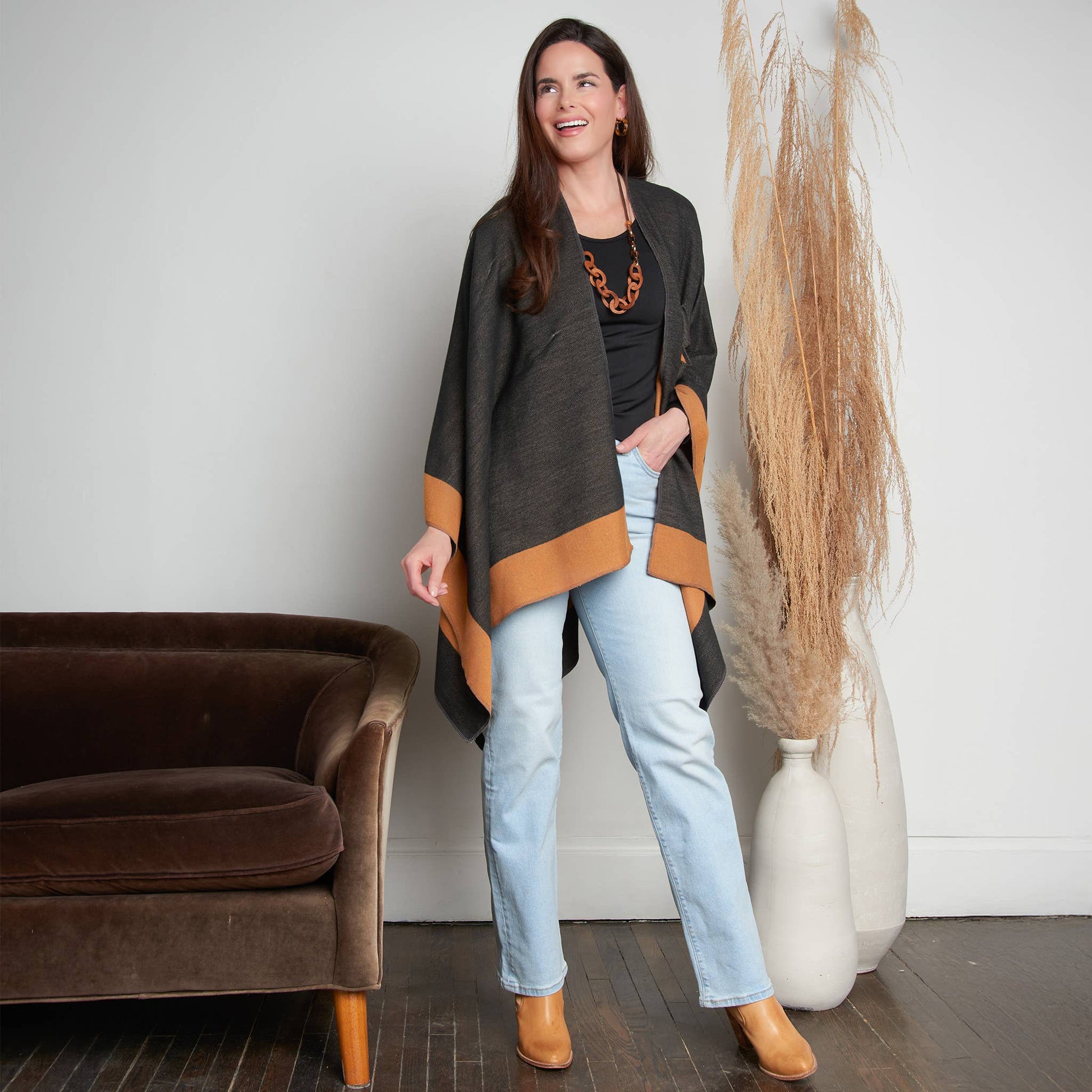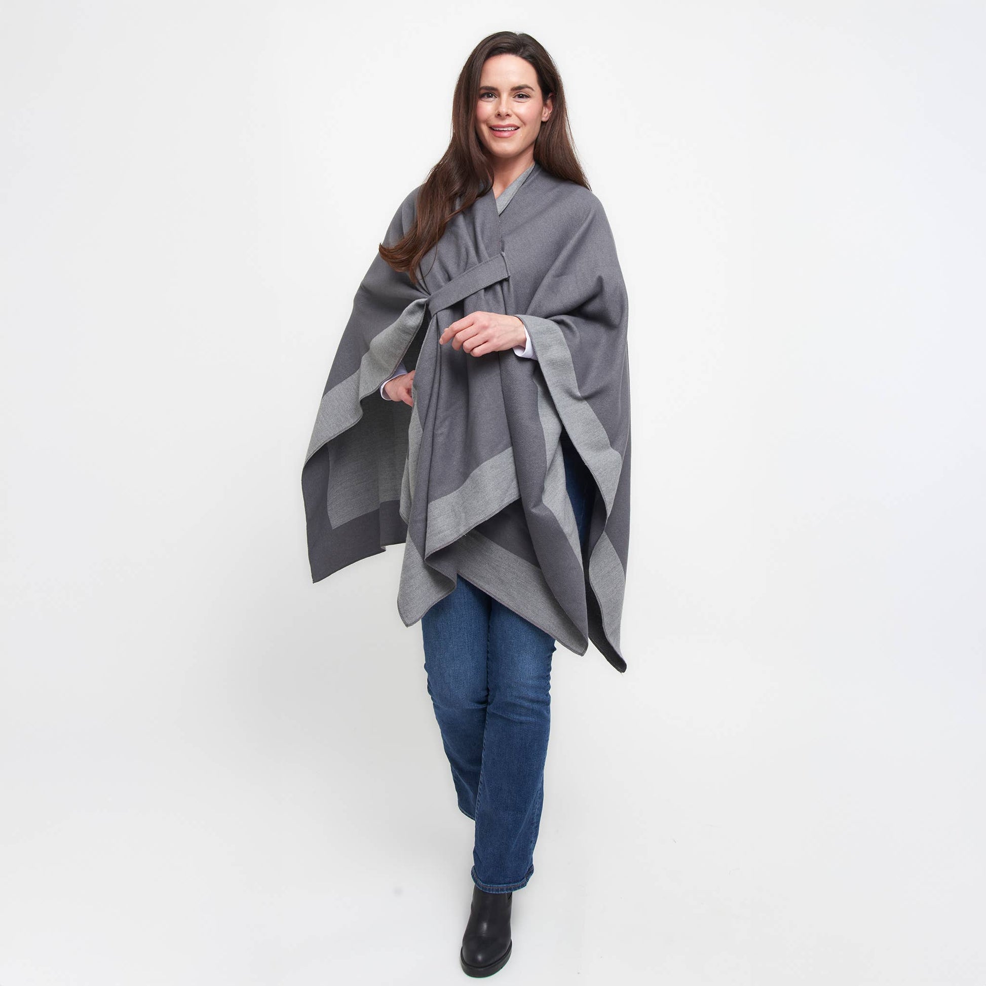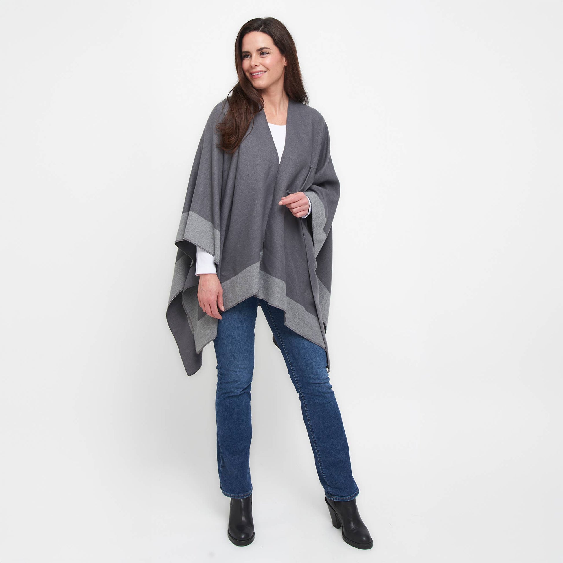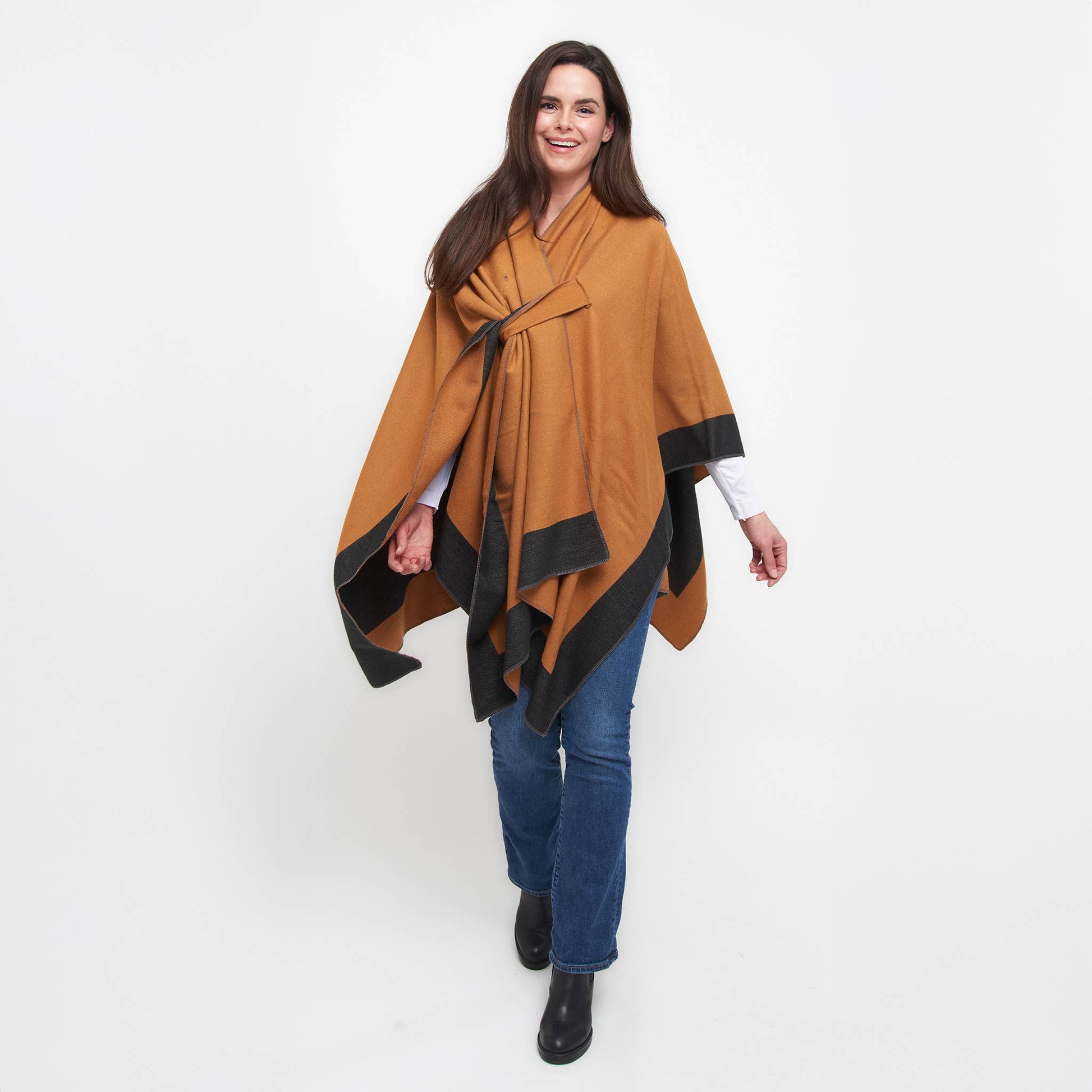 Double your style with the Mackenzie Wrap — a reversible, open-front layer that offers two chic looks in one. Designed for everyday ease, this one-size wrap features dual loop closures on both sides, allowing for a secure, hands-free fit. Bold color blocking and soft, structured fabric bring warmth and polish to any outfit. Whether you're dressing up or down, Mackenzie is the effortless layer that works double-time for your wardrobe.