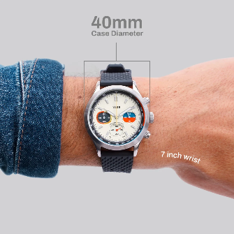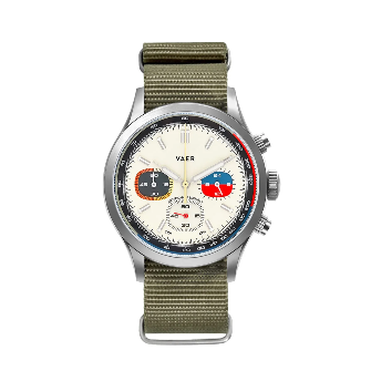The Vaer R1 Rally is a meca-quartz chronograph inspired by the iconic racing watches of the 1960s and 1970s, blending vintage style with modern durability. Featuring a 40mm case, matching our popular C5 and A5 Field watches, it offers 10ATM water resistance and stopwatch functionality, ideal for sports enthusiasts and everyday wearers. The tachymeter scale, vintage TV sub-dials, and “panda” or “reverse panda” dial design ensure readability and striking aesthetics. Assembled in the USA, the R1 Rally is the only chronograph combining ocean-ready durability with independent American craftsmanship. With interchangeable straps and timeless comfort, it’s a versatile, sophisticated timepiece for those seeking style and functionality anywhere, anytime.