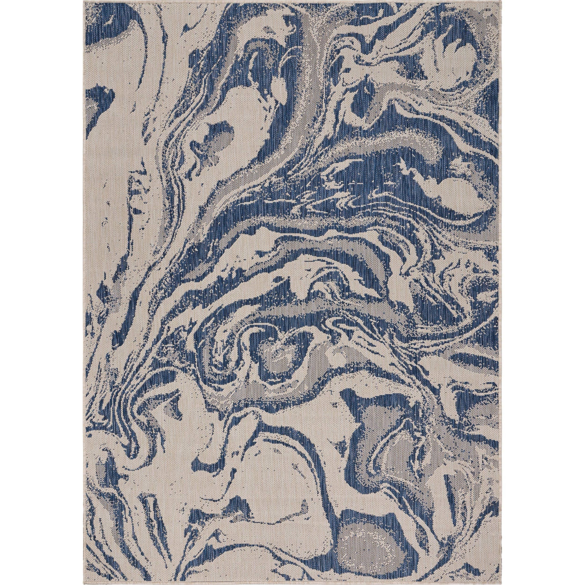 Abstract Oasis White/Navy Indoor/Outdoor Area Rug