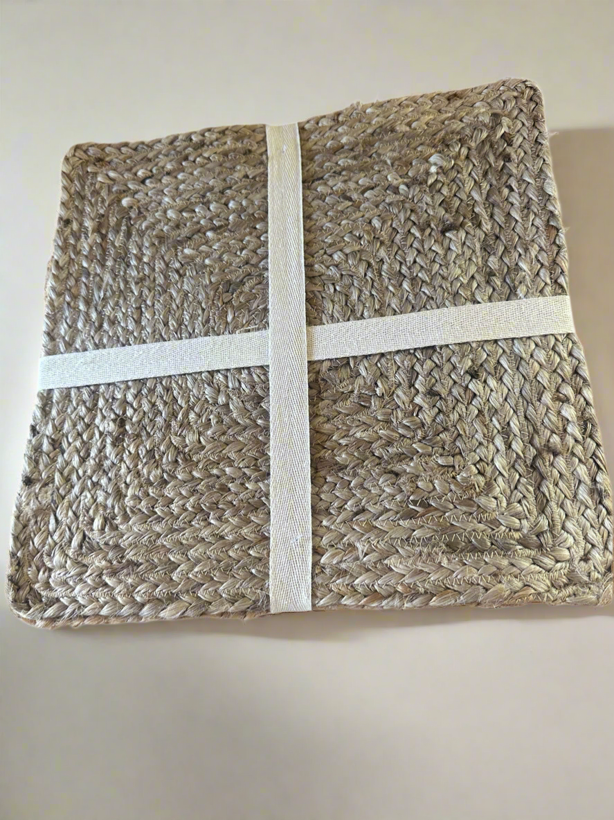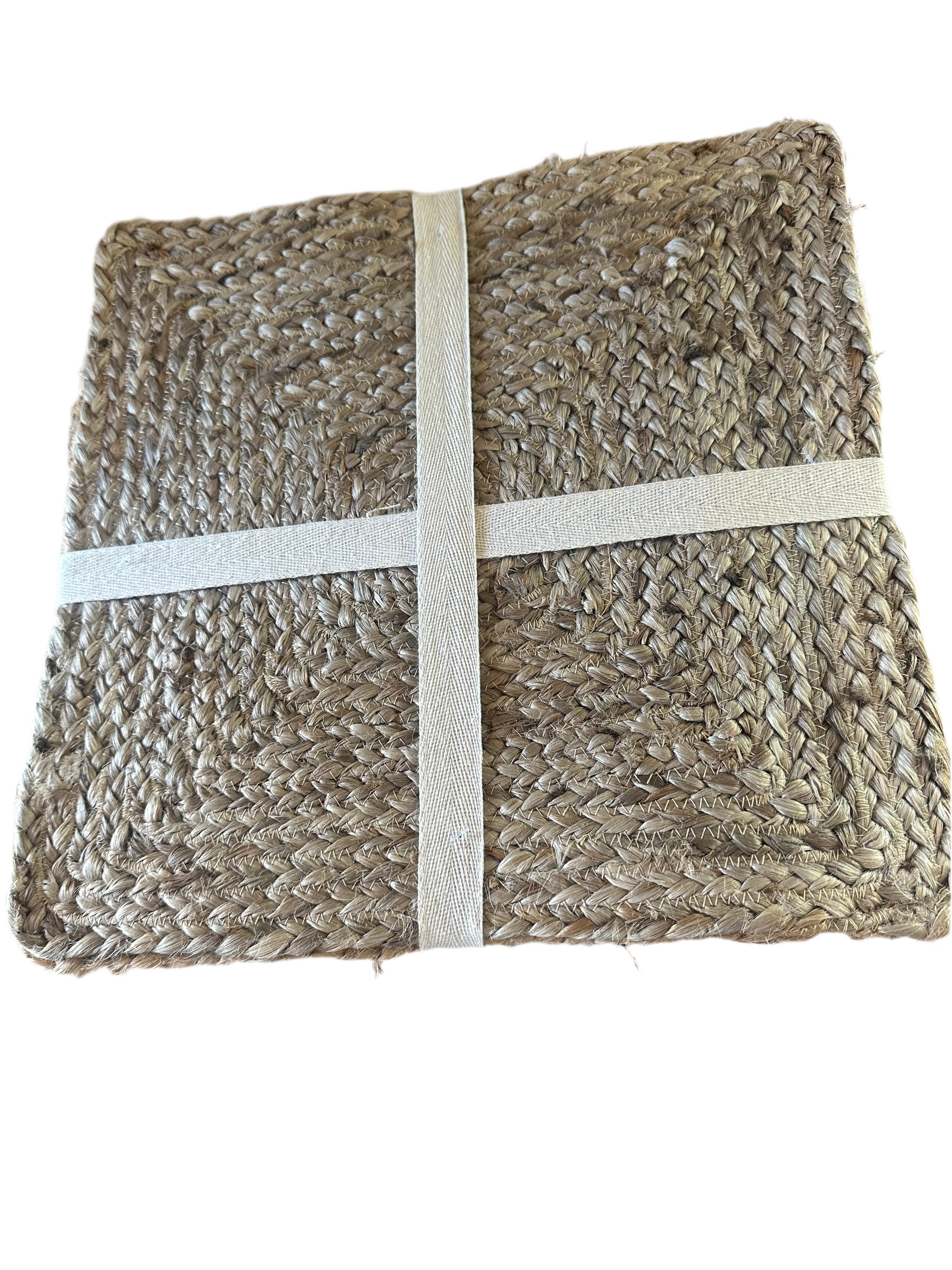 Elevate your table setting with this set of four handcrafted jute square placemats, designed to bring a touch of rustic charm and natural texture to any meal. Made from durable, eco-friendly jute fibers, each placemat features a tightly woven square pattern with subtle variations that highlight the organic beauty of the material. The neutral tones complement a variety of décor styles—from farmhouse to coastal to boho—while providing a sturdy, protective layer for your tabletop. Ideal for everyday dining or casual gatherings, these placemats combine functionality with timeless, earthy elegance.