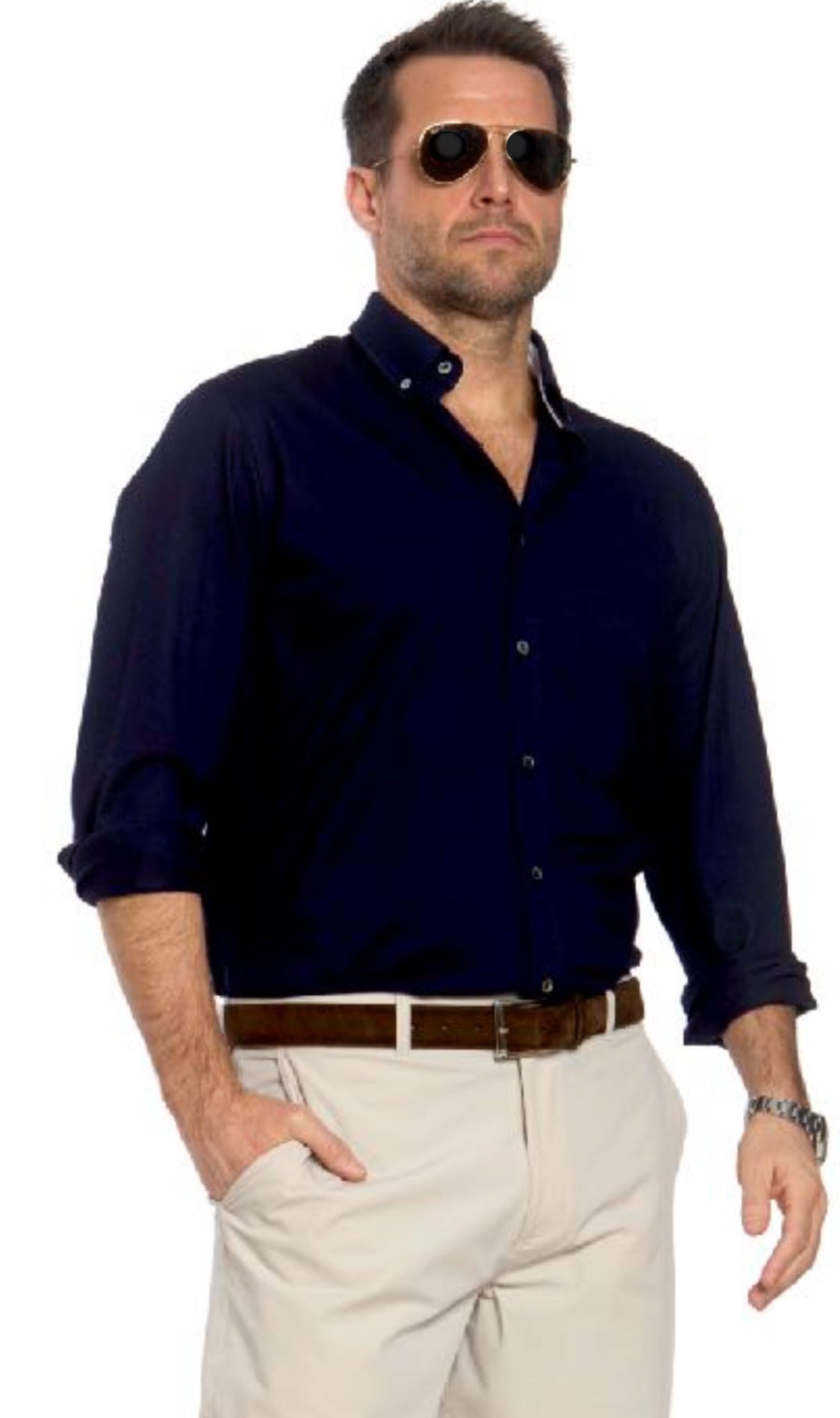 Mother of pearl buttons, contrast woven trim(white) and our famous quick-dry, moisture wicking fabric that should be a solid staple for any gentlemen’s wardrobe.