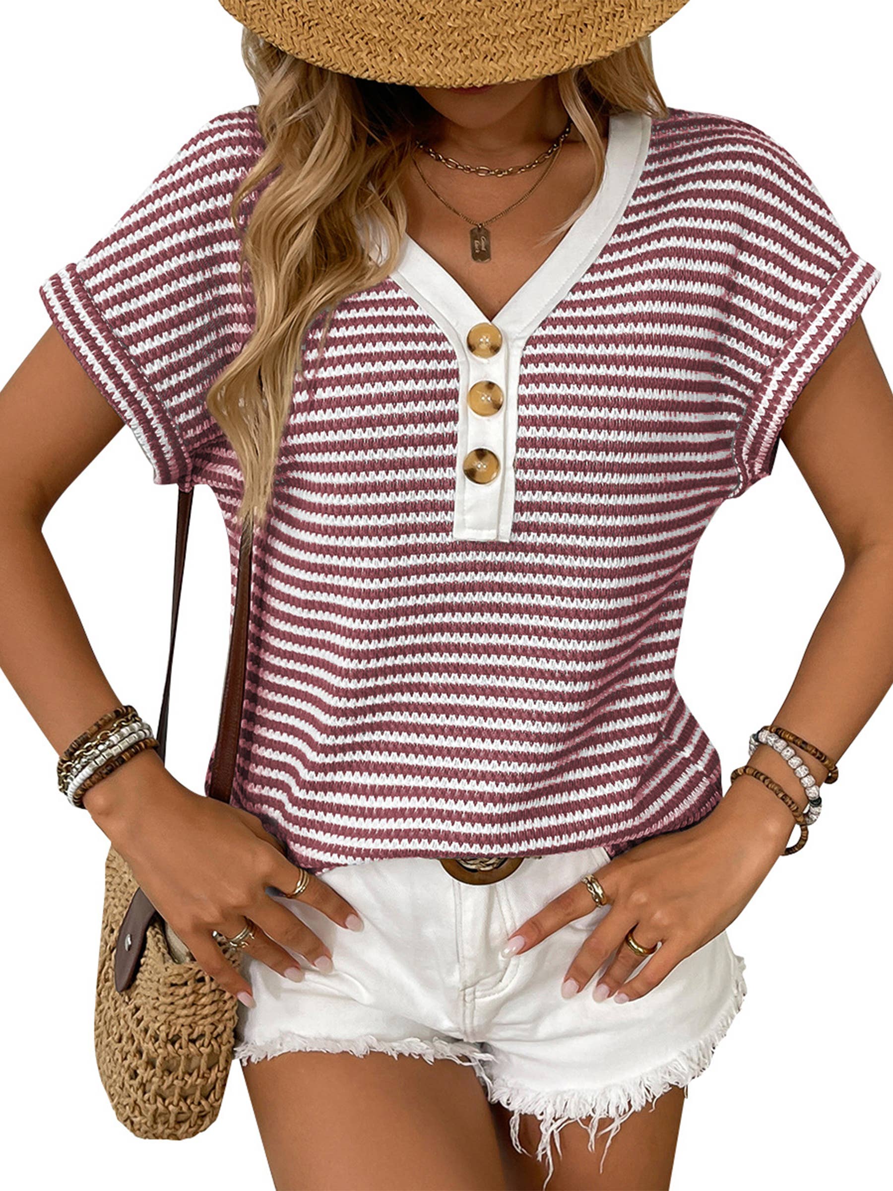V-neck Striped Top